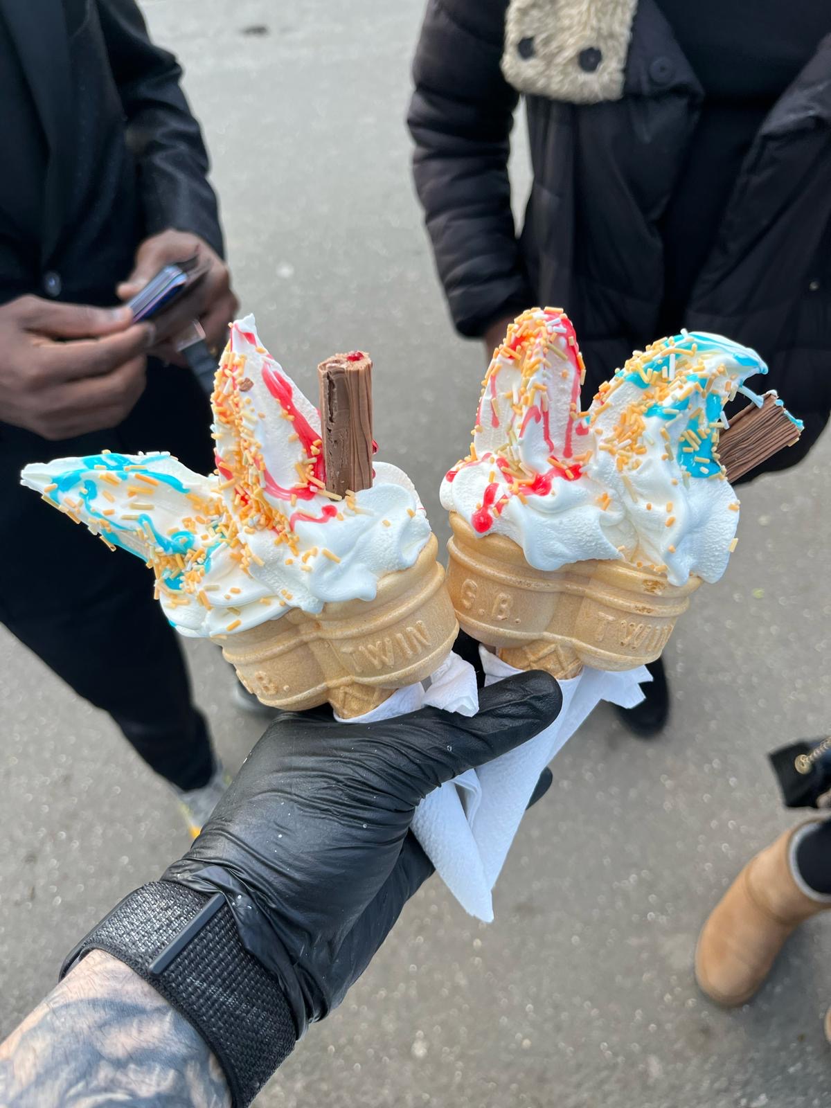 We are a family run business whom priorities customer sevice and quality. Our main aim is to make you happy with the service we provide. We provide a wide range of products like the classic soft served ice cream with a flake to a variety of scooped ice cream like strawberry, chocolate, lemon, bubblegum, mint choc chip, cherry, oreo, coconut, rum and raisin etc. We also have a good range of ice lollies such as lemon, orange, cherry etc. Let us not forget the toppings like the strawberry, chocolate and bubblegum sauce. Also, sprinkles and peanuts. Yes we have nuts! As we are trained in handling allergy products. We have options for our halal customers, vegetarian and vegan customers too.